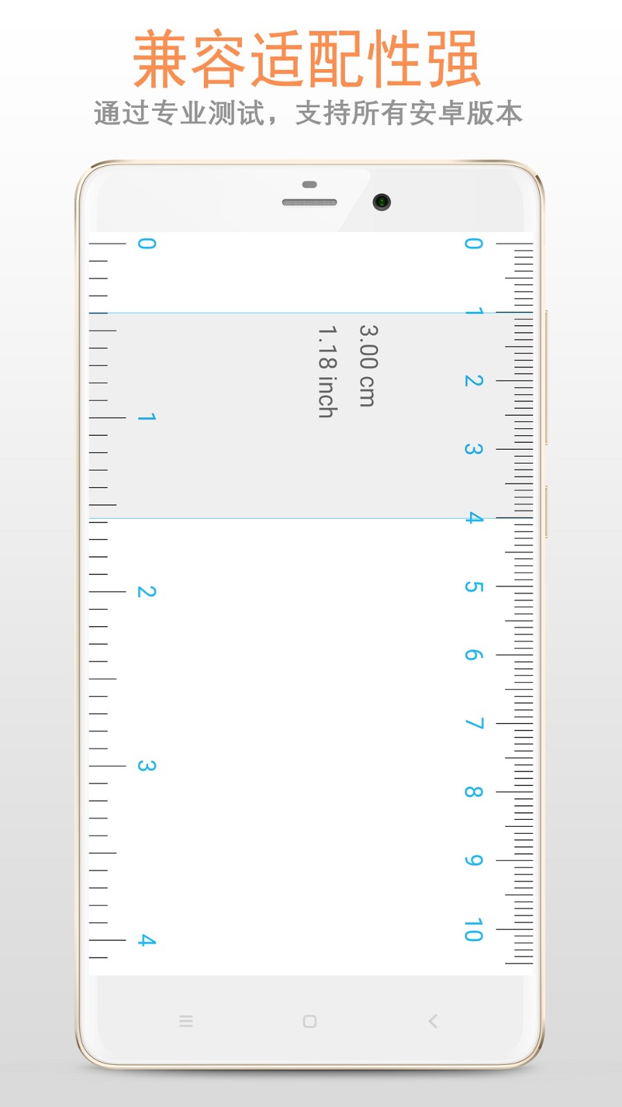 2.第一次使用App时,将手机屏幕对准一个已知尺寸的物品(比如银行卡),然后调整刻度直到数值准确为止。