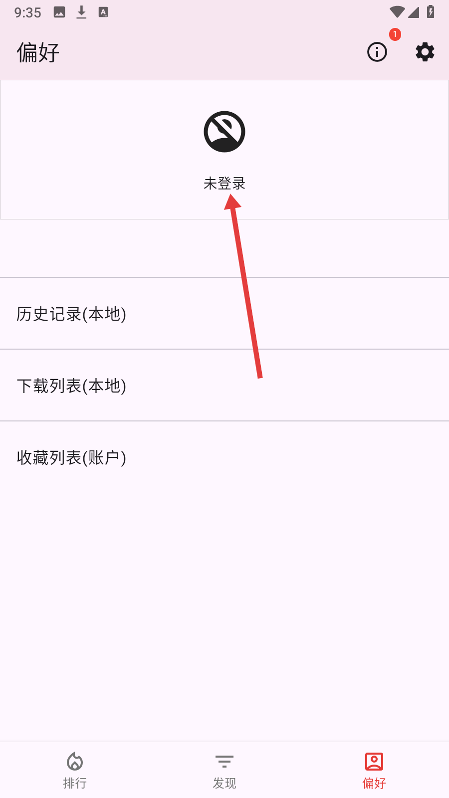 2、在偏好页面点击【未登录】,进入用户设置界面。