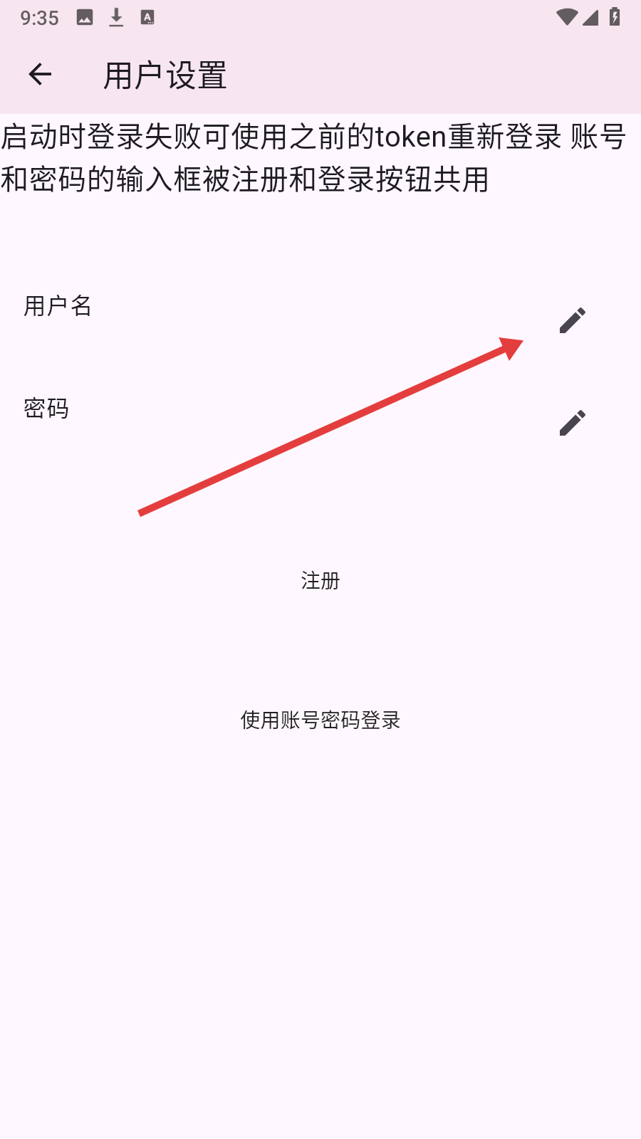 3、在用户设置页点击【用户名编辑图标】,准备填写信息。