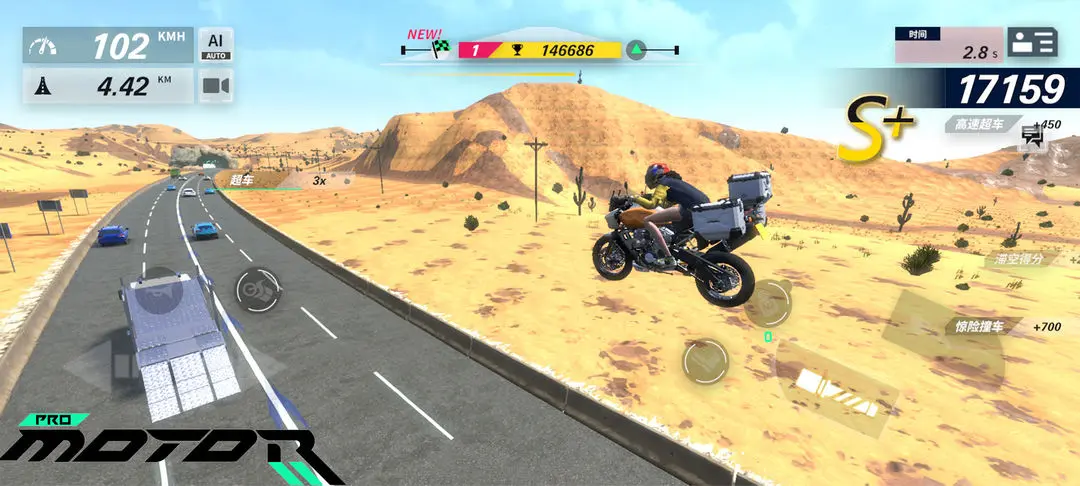 获得分数的条件都考验着骑士们的控车技巧,比如:近距离超车、跳跃、使用氮气加速、漂移、抬头行驶以及长时间保持高速驾驶等。