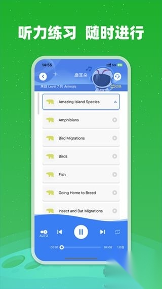 3、【专业听力训练】海量听力题库,支持多难度分级练习,稳步提升听力理解能力。