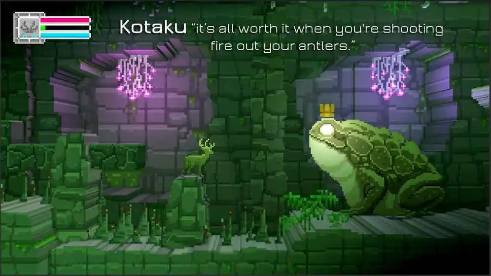 鹿神传说的游戏主要玩法是跑酷和解谜。主角因为杀害了太多动物而被鹿神惩罚变成了一只动物。玩家需要通过一系列的任务,如横冲直撞和分辨善恶等,来帮助主角完成自我救赎。在这个过程中,玩家还需要解开各种古老的谜题,在山林之间不断奔跑跳跃,并使用不同的攻击方式对抗邪恶生物。