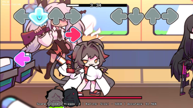 这是一款结合了碧蓝档案角色的音乐节奏游戏,其核心玩法借鉴了fnf的风格。