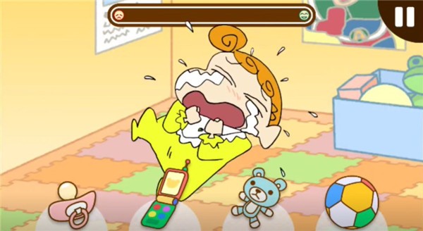 9、作为一个好哥哥,你点击安抚奶嘴,递给小葵,小葵不哭了,冒出了红色的爱心,注意看头上的进度条,需要达到百分百才行。