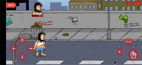 1、游戏开始,流浪汉可以出拳,可以踢腿。路上有不少的道具,都可以拿来扔。
