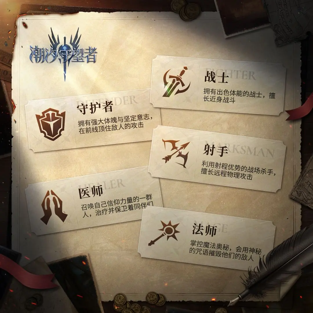游戏分为五大职业:战士、守护者、射手、医师、法师