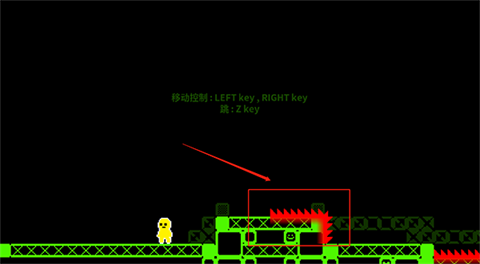 3、在游戏中,我们使用方向键进行移动和跳跃,角色不会死亡,如果碰到红色锯齿会被弹开。