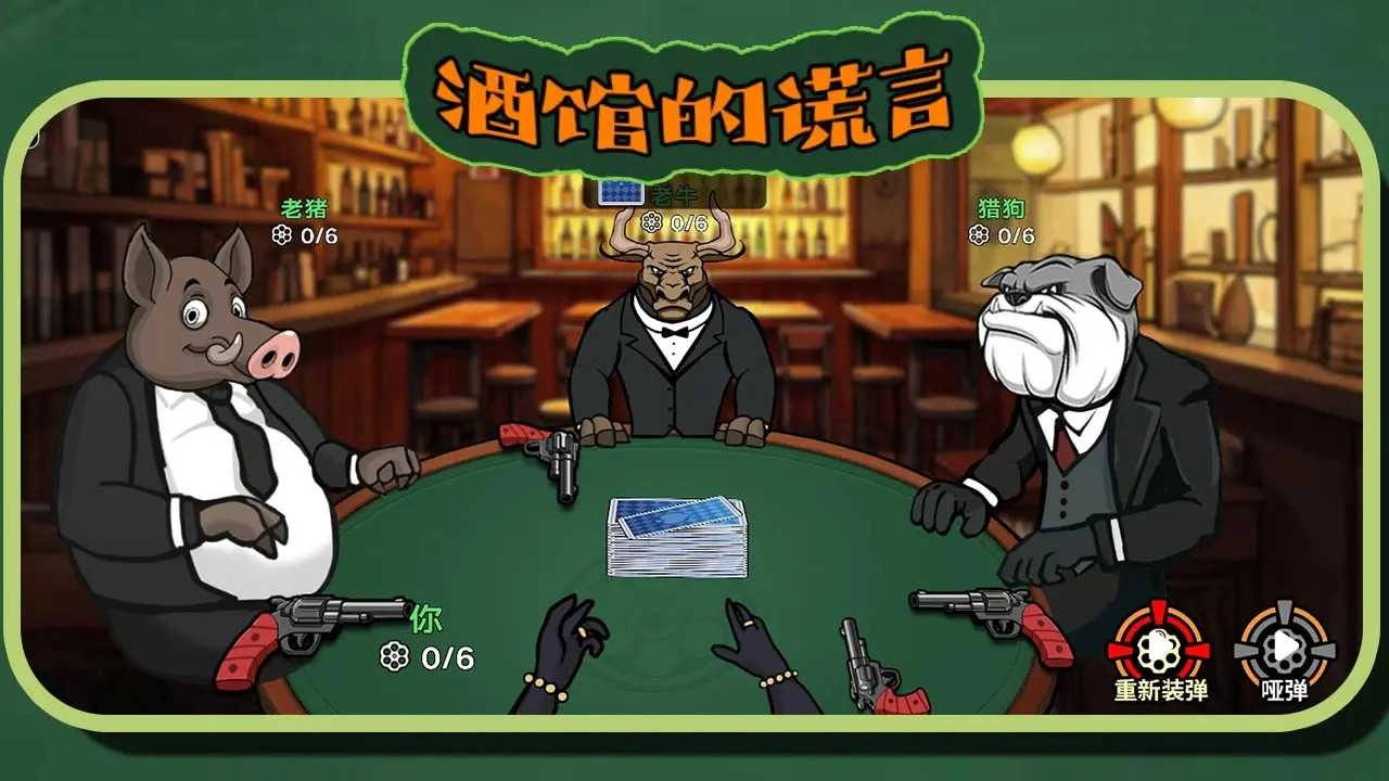 《酒馆的谎言》是一款围绕欺骗展开的游戏,玩法与恶魔轮盘相似。在联机模式中,玩家会置身于一座神秘酒馆,与其他三个形态不同的动物进行竞技。玩家需借助心理博弈,找出对手破绽,将所有对手击败便可获胜。