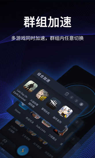 2、业界仅有群组游戏加速,多游戏任意切换,无需操作。