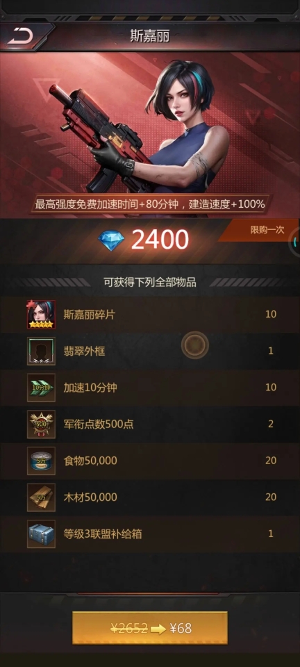 红5斯嘉丽(首充,有三个价位的)*30/68/128