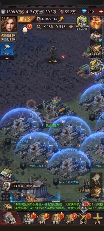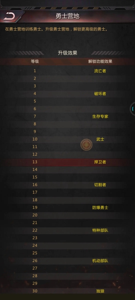 当训练营地升至13级后,才能训练五阶兵。多训练士兵才能在世界地图上随意击败外星人。