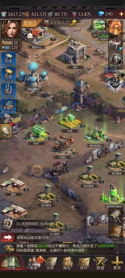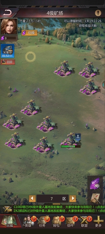 为了提升游戏体验,开发团队以废土重建为主题,设计了多种多样的野外活动。在游戏中,您可以派遣军团探索这片充满危险的废土,收集物资并将其运回基地。在这个过程中,您还有机会遇到外星基地、敌对势力袭击以及人类文明的遗迹等。一场场惊心动魄的冒险之旅正等着您来开启。