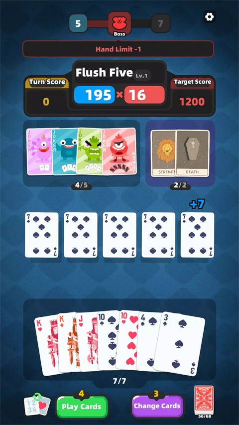 2、变色功能:小丑牌可改变牌局颜色,增加游戏不确定性与变数。