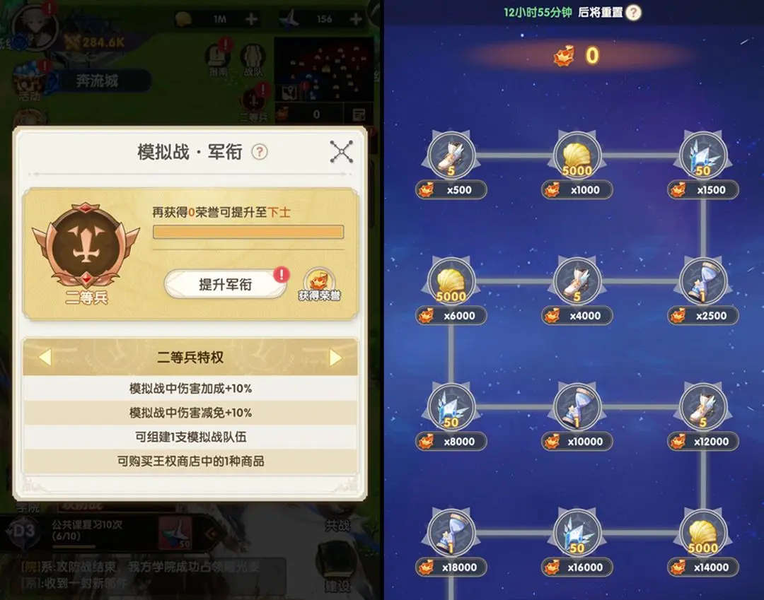 荣誉:可提升 [军衔],获取 [每日奖励]。