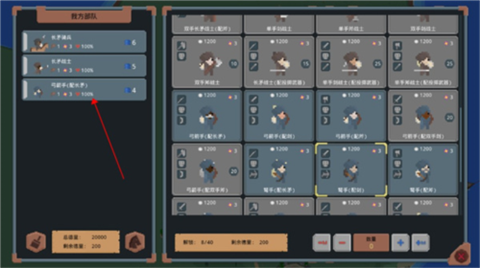 1、兵种还是比较丰富的,骑兵、弓箭手、长矛手等等....并且还分类了 弓箭手配斧头、弓箭手配刀,可谓是比较细心了,不是这样,还能清楚的看到每个士兵的装备和属性。