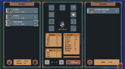 2、右边浅蓝色的士兵代表可配置,灰色士兵需要达到一定等级后配置我方部队,配置完成后点击开始战斗。
