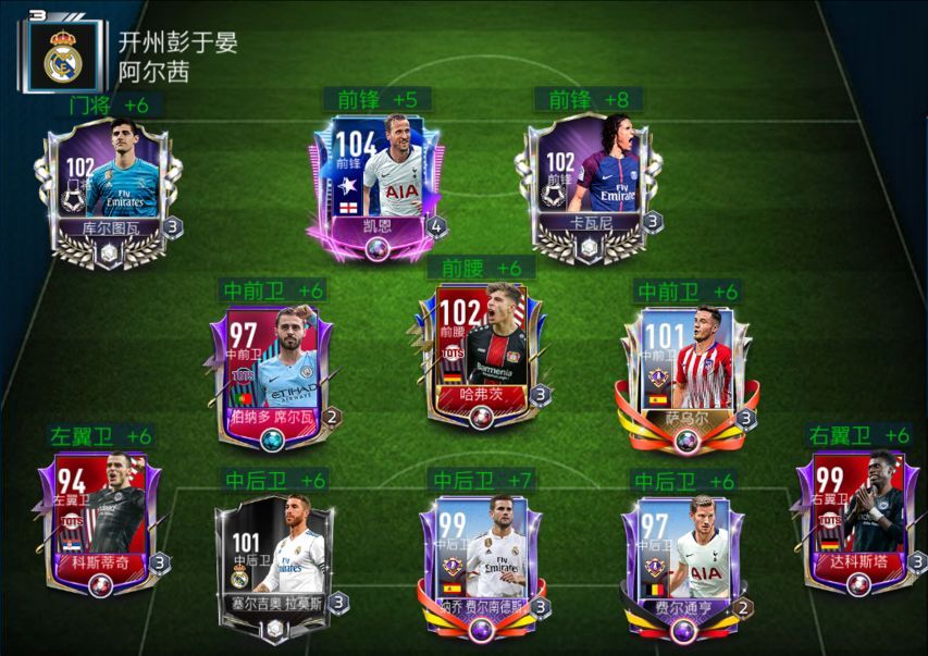 这个呢 是我的实时首发 注意看2个前锋 3个中场 2个翼位 3个后卫