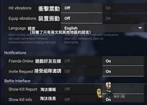 第二张展示了游戏功能设置的翻译对照。