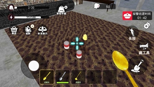 4、通过滑动控制铲子挖掘方向,点击确定落点,在警卫巡逻间隙挖通地板逃离牢房。