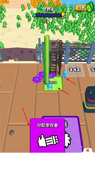 2、在场景中进行塔楼建设,分配幸存者,为割草与生存提供支持,奠定游戏发展基础。