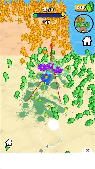 设计大量被感染的僵尸,不同僵尸有着不同的移动速度与抗打击能力,聚集时形成密集的僵尸群,为收割机的疯狂收割提供了充足目标,增强割草爽感。