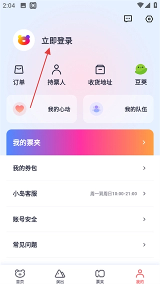 2、在个人页面,点击立即登录,进入登录操作页面。