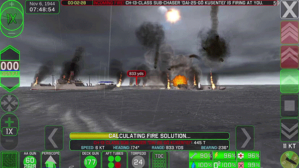 该游戏以二战为背景,你将指挥德国潜艇在大西洋击沉敌人的舰队,还要负责运输武器、鱼雷,还可以夜晚的时候对敌人进行袭击,当敌人来临时你还可以将敌人引入陷阱,如果将敌人全部消灭,战斗胜利后玩家将会获得大量奖励,可玩性很高。另外,战术潜艇2还增加了子弹爆炸和自残的设计,以及加了子弹碰撞反弹规则设置,给玩家不同的视觉体验,总之,只要你敢想,就能实现,非常的有意思。