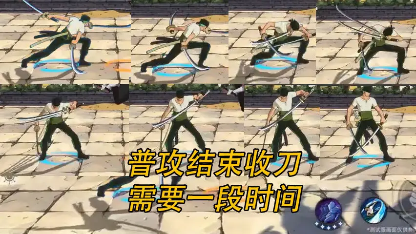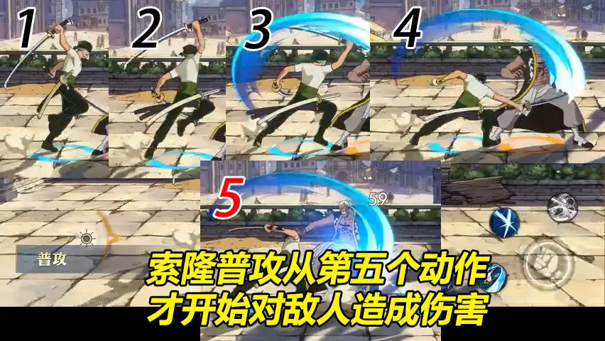 以索隆为例,众所周知索隆是一名剑士,是用身上的刀来对敌人造成伤害。无论是技能还是普攻,都要先把刀挥舞起来,当刀砍刀敌人身上的时候才能造成伤害。