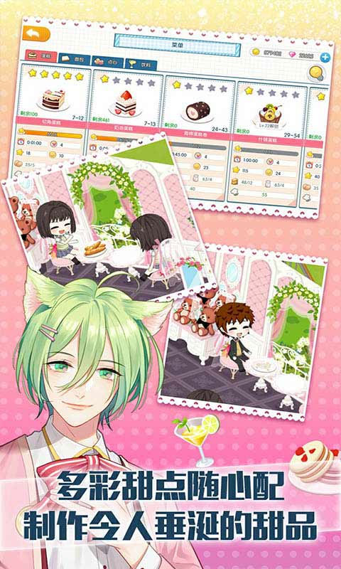游戏中,玩家将扮演一名初出茅庐的店长,经营自己的甜品店。扩张店铺、制作菜品、培养店员、摆放家具、购买食材,为各位玩家营造出真实却不失趣味的模拟经营环境