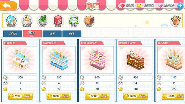 尽管甜品店现在能够正常营业,但如果店面缺乏特色,则难以吸引更多顾客。在游戏里,各位店长可以通过商店购买操作台、橱柜、桌椅以及各种装饰品,来打造一个更具吸引力的甜品店。和风、森系、魔法等数十种不同风格的主题店铺一定会让你大开眼界。