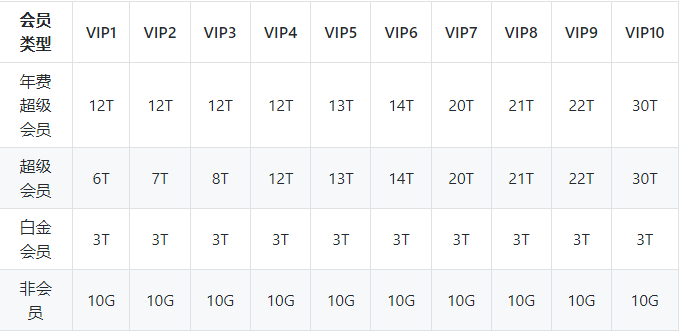 二、云盘流量会员特权说明
