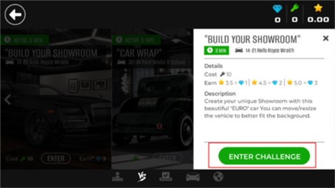 2、挑战在于随机选取一种车辆开始游戏,选好之后点击中间的“ENTER”。