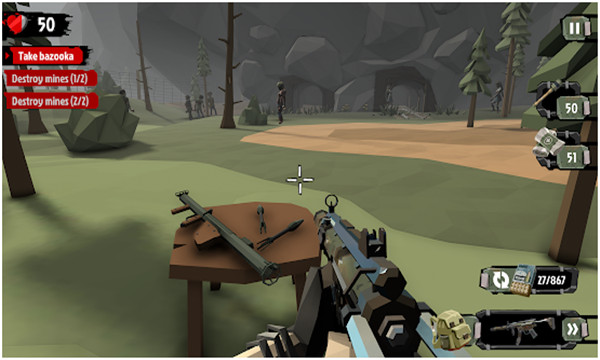 这是一款以第一人称视角进行的射击游戏,玩家在游戏中会遇到大量的僵尸。为了生存下去,玩家需要不断击败这些僵尸。此外,游戏中提供了多种武器供玩家选择,每种武器都能带来不同的游戏体验。