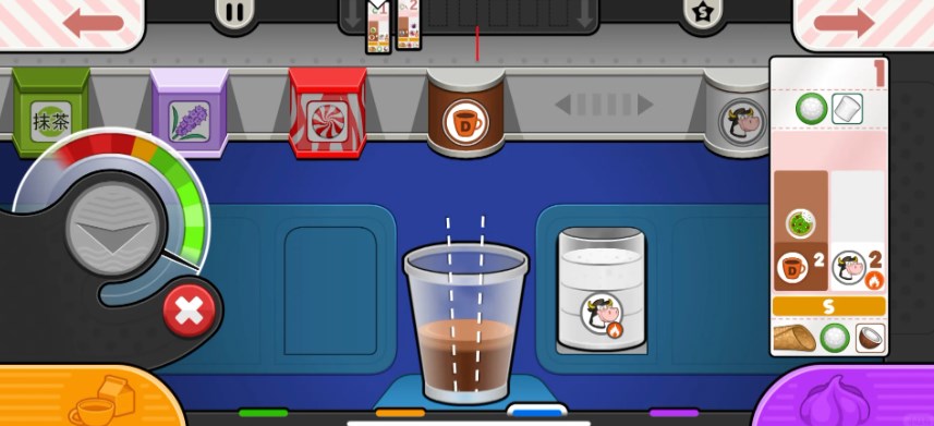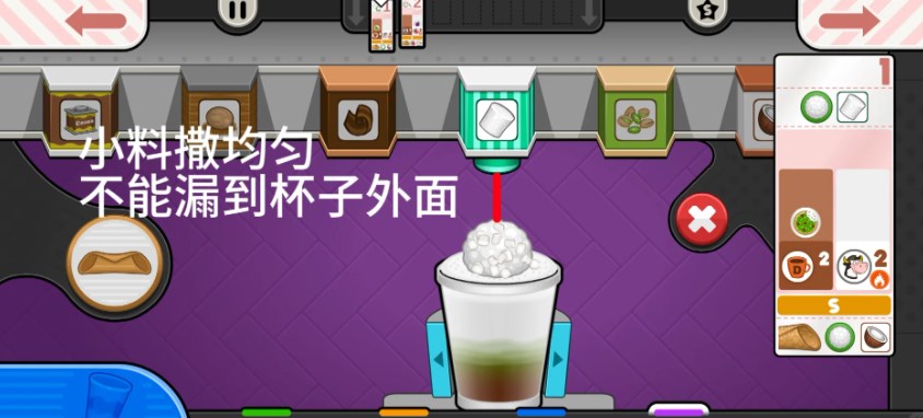 做咖啡分,依次添加奶咖糖浆之类的,秘诀就是对准中线,见图2
