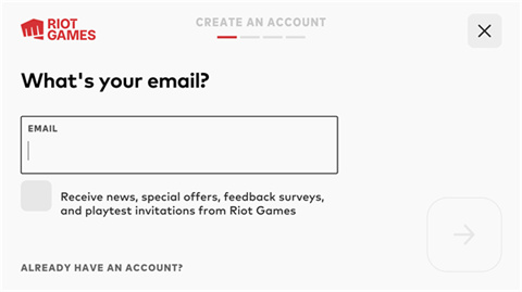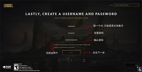 5、这一步需要填写的是登录账号名,而不是游戏内的昵称。请注意,账号名不能包含汉字,只能使用字母和阿拉伯数字。填写完毕后,请点击右下角的箭头继续下一步。