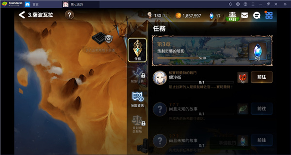 在《第七史诗》中,每个地区都代表了游戏故事的一个章节,因此在探索这些地区时,你可以了解到相应章节的主线故事。在地区地图界面中,点击右侧栏位中的“任务”图标,即可查看当前章节的任务列表。每个章节包含多个任务,只需点击任务标签旁的“前往”图标,就可以直接开始执行该任务。完成每个任务后,你将获得相应的奖励;当整个章节的所有任务完成后,还可以领取额外的章节奖励。