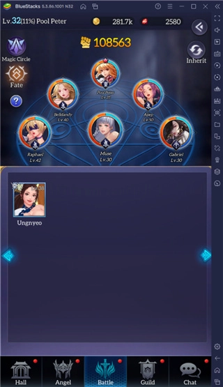 3、战斗- 这是您的天使进行空闲战斗或 BOSS 战斗的地方。在这里战斗的天使取决于谁是阵容的一部分。阵容可以随时编辑。