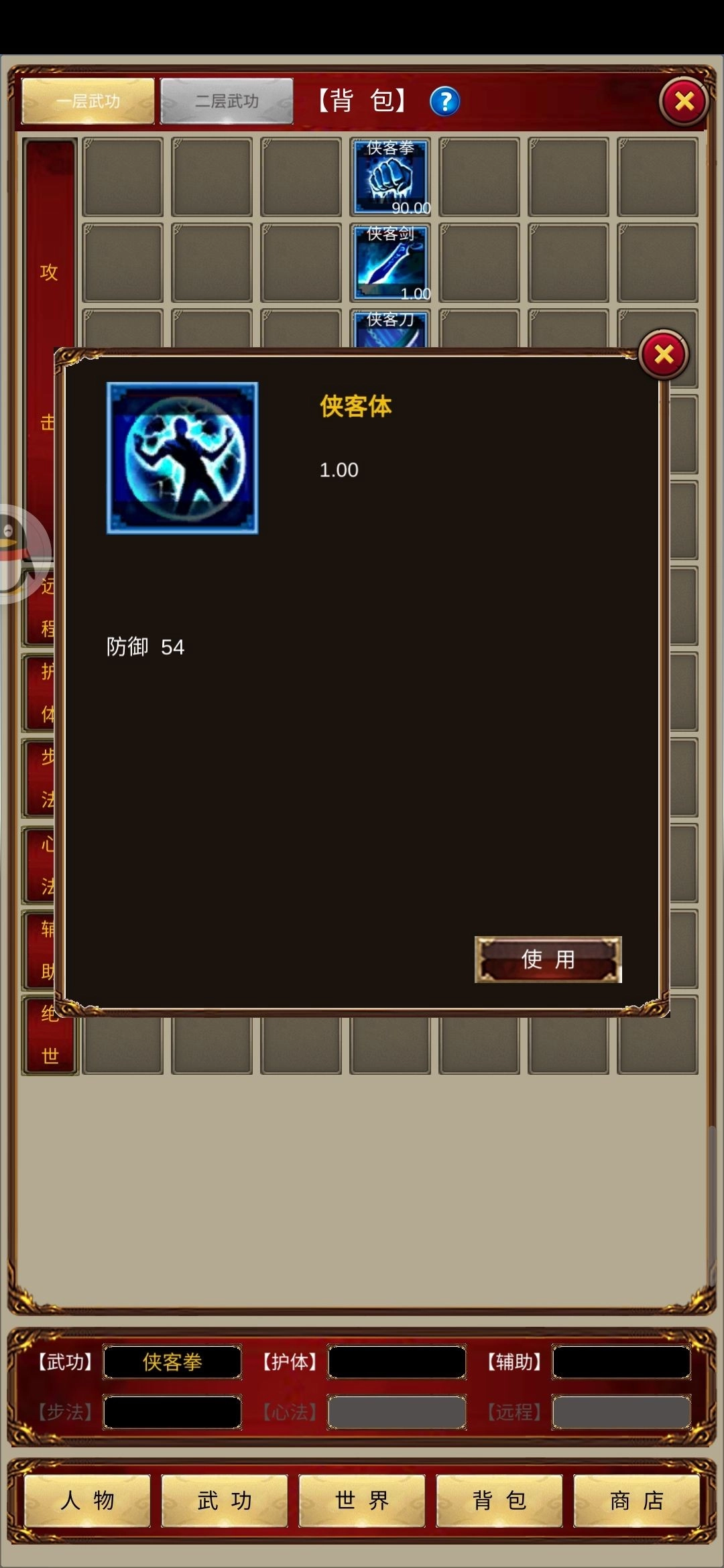 侠客拳99.99练满 还有二段侠客服 就可以去单挑忍王了 记得一定要买点金毛草 回血 毕竟忍王打人还是很疼的