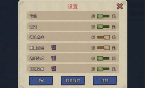 首先,背景音乐这个看个人情况哦,关掉音乐可以边听歌边玩。但是,自动采集和连续合成最好关掉,不关自动采集的话小幻兽们会乱采集,很浪费体力,而且场地会很乱。关掉连续合成是为了5合,一定要记住,在这个游戏里除了不能合并的物品,所有东西都是5合更划算。