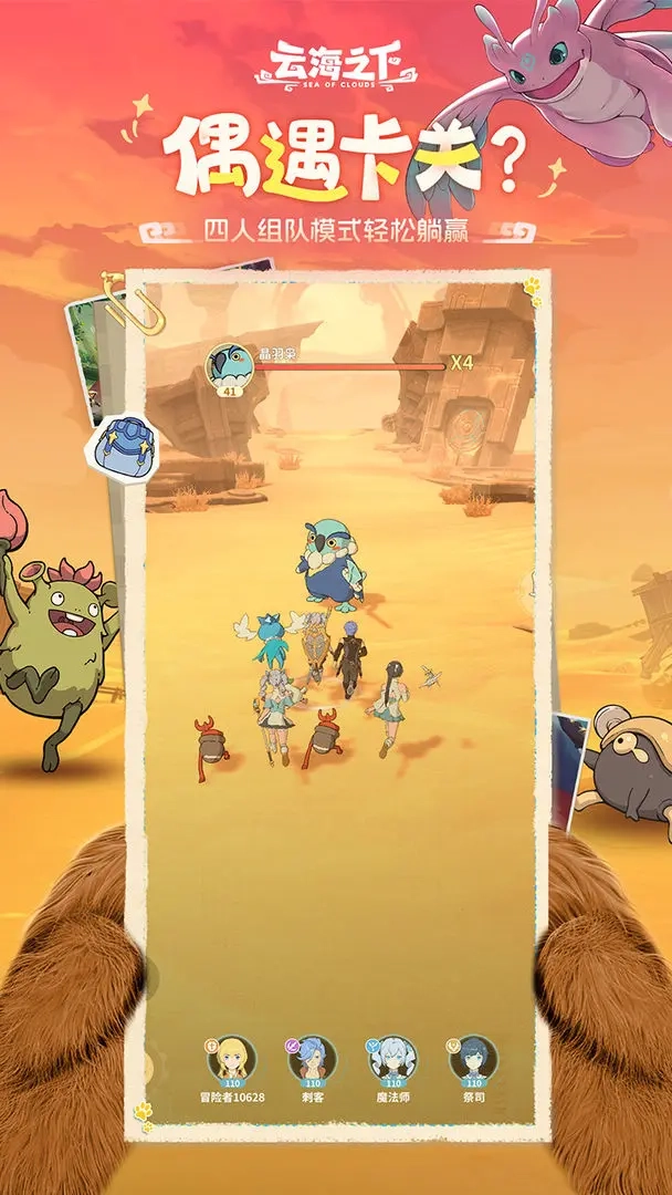 云海之下公测版,是一款异世界冒险闯关游戏,画面精美。在游戏里,玩家得招募各类强力角色组队冒险,就算放置挂机,也能轻松闯关挑战。游戏中角色丰富,玩家可自由搭配角色装备,还能捕捉各种宠物,助力轻松应对怪物袭击,获取更强大的战斗力。