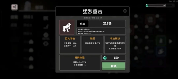 猛烈重击解锁以后把其他技能都禁掉进图改造三次成三星状态就可以退出游戏,解锁四锤三叶草之后就再也不会用到它了