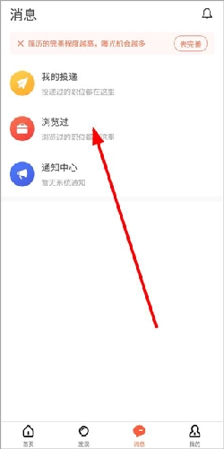 4、打开消息页面,可以查看和企业hr联系记录、简历投递记录和浏览过的职位等信息;