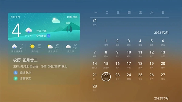 在桌面上的天气插件,能够查看未来五天的天气情况,还能查看一年的日历与黄历。