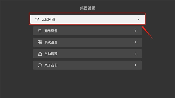 1、在软件界面选择“设置”按钮,在“桌面设置”中选择“无线网络”功能。