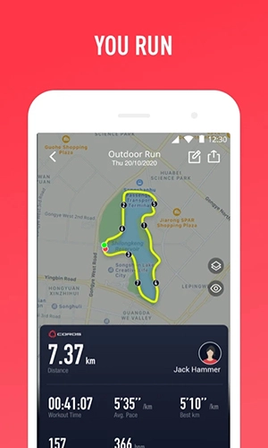 1、运动记录,每日记录用户的运动情况,运动轨迹,为你展示每日运动健身成果图。