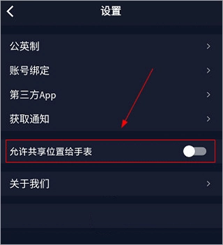 4、在页面设置中,选择允许向手表共享位置,如此便可以记录手表的运动数据。