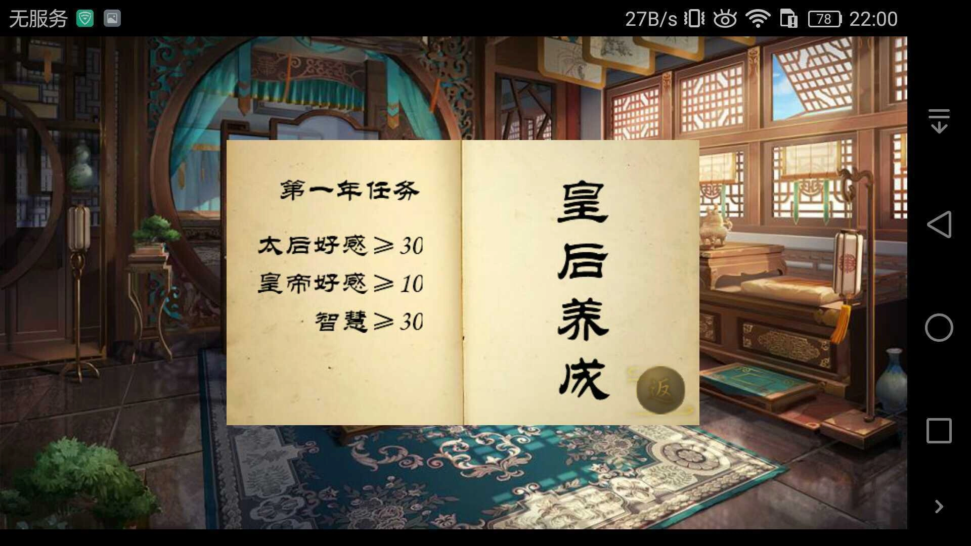 你将扮演一个后宫之主的一生。剧情养成模式:涵盖后宫管 理,开销管理,妃缤联盟,子女教育与婚姻,宗室关系等诸多方 面。事天下是皇上的,后宫是皇后的。发当皇上难,当皇后 更不简单。附爱情,权力,地位,自由,世上哪有一成不变的道 理。这个皇后,你打算怎么当?