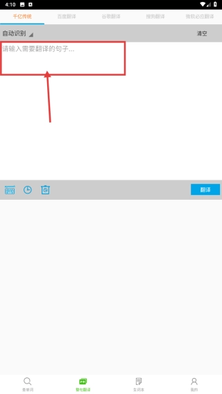2、在智能翻译页的输入框,录入需要进行翻译的文字内容,准备执行翻译。
