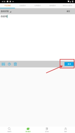 3、输入文字后,点击右侧蓝色翻译按钮,获取对应内容的翻译结果。