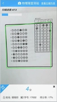3.开始扫描:选择参加本次测验的班级,进入扫描页面